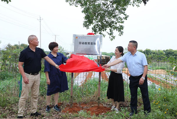在群益村共享菜園,現場舉行勞動教育基地揭牌儀式。五里界街黨工委副書記徐家朋,團區委副書記蘇成鳳,湖北美術學院雕塑與公共藝術學院黨委書記羅遠紅、黨委副書記劉小榮,群益村黨支部書記謝受文,區政協駐村隊員齊煜共同出席揭牌儀式。