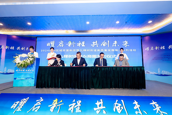 活動中,九棵樹街道與怡樂北街金融街片區(qū)公共空間提升改造區(qū)域的相關(guān)業(yè)主簽訂共建共管協(xié)議,攜手共同致力于該片區(qū)的提升改造工作,促進商圈融合,推動老商圈煥發(fā)新生,打造副中心品質(zhì)消費新場景。并與新入駐企業(yè)及招商中介代表簽訂合作協(xié)議。