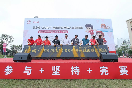 5月2日上午8時,亞運城·2019廣州市青少年鐵人三項比賽暨RUN! KIDS小鐵三城市賽廣州站開幕儀式隆重舉行。共青團廣東省委員會副書記唐銳先生、華南師范大學體科院副院長黃波先生、碧桂園廣州區域營銷副總經理、廣州利合房地產開發有限公司副總經理鄭楓先生、碧家文化傳播有限公司總經理王慧鵬先生、倫敦奧運會冠軍羅玉通先生、雅典奧運會冠軍楊景輝先生、雅典奧運會冠軍張潔雯女士、安誠財產保險股份有限公司廣東分公司總經理許文鋒先生、碧家文化傳播有限公司常務副總經理兼首席運營官穆舟先生出席了開幕儀式。