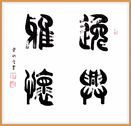 當代寫篆書,一般就是注意了筆法的柔性與圓性,他的書法卻是剛柔相濟,方圓通能,豐富的筆法正是汲取諸體的功成。所以黃映元先生的篆書一體,對當代書壇來說,具有鮮明的承前啟后的集成要素。這就是他持開放的思路,醞釀篆書新風,食古而化進取開拓的標高造詣。
