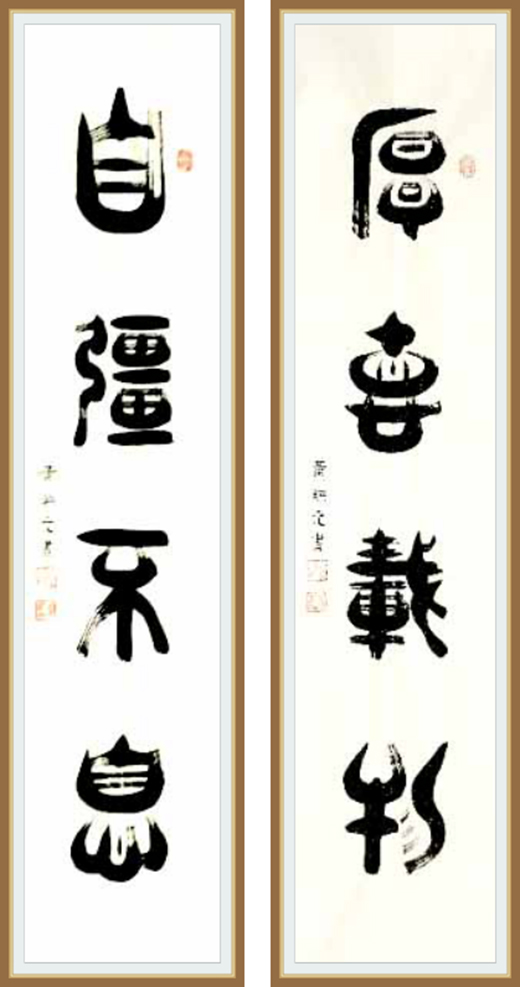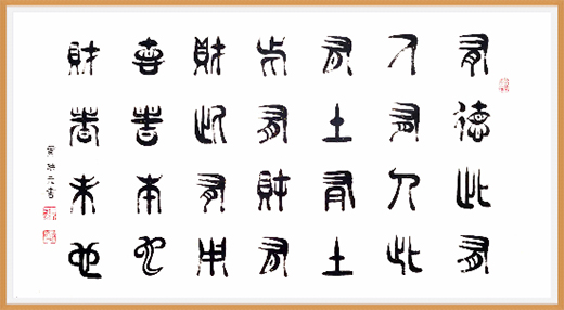 人們登泰山看泰山石刻,如今僅殘存八字模糊,心中難免生有文化流失的遺憾。但是看過黃映元先生豐富多元的篆書作品之后,這種遺憾的空間會被壓縮,因為他的這些篆書作品正好能填補篆書缺失的許多空白,讓中華龍脈的源頭不再有遙觀而不得印象的空嘆!所以說,精于篆書的高古創作,不僅僅是他個人的書法造詣,也是民族文化得以承源的功德。