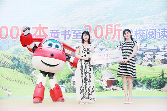 開業盛典上,為延續這份愛心,進行了一個特別的儀式——愛心公益捐書儀式。品牌創始人兼董事長蔡熙敏女士和謝娜女士一起,把捐書卷軸轉交至愛心快遞箱,愛心大使超級飛俠樂迪把愛心移交給滿天星公益機構代表,完成一次愛心捐贈。