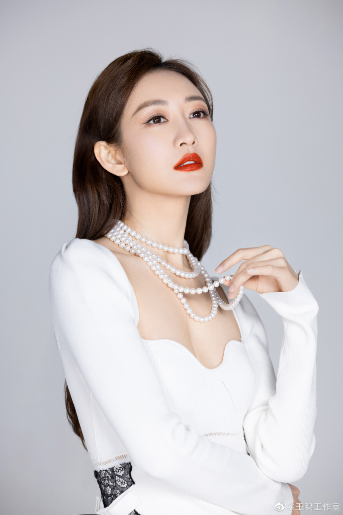 王鷗涂紅唇穿白衣散發女人味 性感優雅