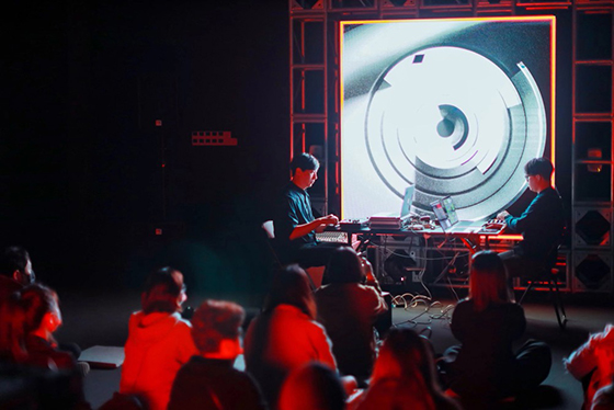 電子音樂人劉一緯(左)、多媒體藝術家苗晶(右)在表演現場