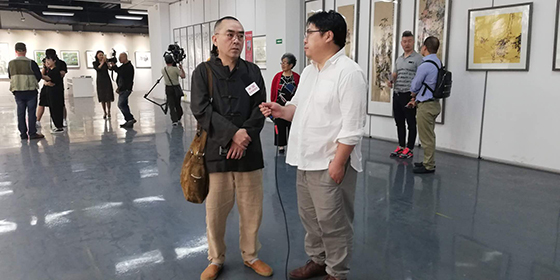 賀夫君朱丹山水畫《牧馬天山下》在保利會展中心展出(新韻)