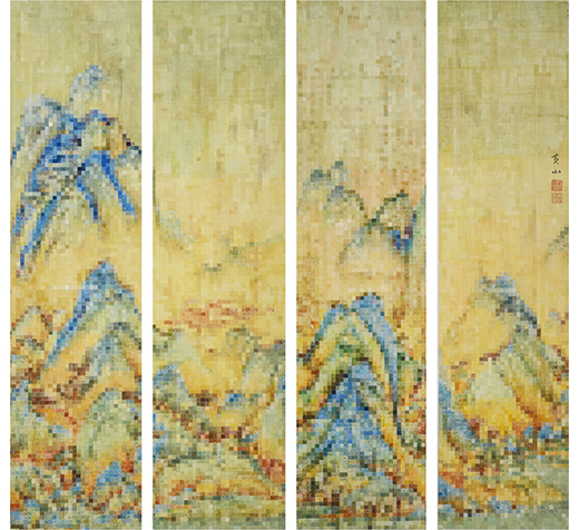于是,黃悅欣老師開始了自己的創作,她找了很多中國最傳統的、有名的山水畫,比如《富春山居圖》等,她用數字化的心態去畫這些最古老的畫,她新創作的《千里江山圖》,作品長度達到了14.2米。
