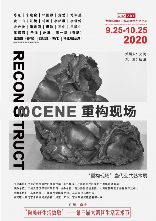 此次“重構現場”當代公共藝術展,由中共廣州市南沙區區委宣傳部作為指導單位,廣州市南沙區文化廣電旅游體育局作為主辦單位,廣州大灣區保稅有限公司作為承辦單位,南沙開發建設集團和大灣區國際藝術品保稅產業中心作為協辦單位,并聯合了廣東美術館、廣州美術學院美術館、三三當代藝術中心等眾多藝術機構作為學術支持單位。展覽延續了大灣區生活藝術節一直以來的“向美好生活致敬”為主題,知名策展人艾海以“重構現場”作為策展概念,展覽集結了包括(按姓氏字母順序排列):陳克、車建全、鄧國源、范勃、傅中望、黃一山、江衡、劉可、李邦耀、李佳锜、史金淞、隋建國、譚勛、王中、王璜生、王紹強、于洋、趙展、潘一舉(香港)、王瀅露(香港)、劉欣玨(澳門)、楊北辰(臺灣)等共22位來自兩岸三地的藝術家,共展出包含:架上繪畫、雕塑、裝置、影像等共30余組作品,其中不乏蜚聲國際的著名藝術家代表作和藝術家巔峰時期的佳作。展期從2020年9月25日至2020年10月25日。