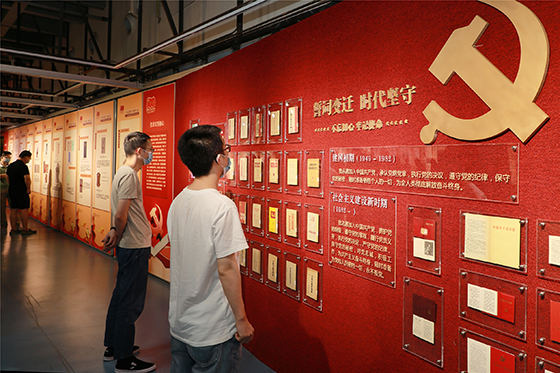 本次展覽以兩館所藏的豐富紅色文獻資源為基礎,精選出172篇文獻,分為感悟思想偉力、黨章宣誓初心、理論創新成果、講述革命歷程、繁榮紅色文藝五個單元,系統梳理了《共產黨宣言》《中國共產黨黨章》等重要紅色文獻。