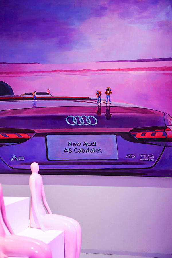 其中奧迪A7誠邀著名雕塑藝術(shù)家隋建國、著名影像藝術(shù)家黎曉亮等藝術(shù)家聯(lián)名共創(chuàng),圍繞著“光影與時(shí)間-感知純粹”主題,匯集雕塑、繪畫及裝置藝術(shù)等多種形式的創(chuàng)作,以奧迪A7為靈感,創(chuàng)作出了多部充滿哲思與情緒感染力的藝術(shù)作品,將曲線和車型優(yōu)雅弧線完美融合,也借此表達(dá)奧迪A7對于“唯美,不妥協(xié)”的極致追求;“出色實(shí)驗(yàn)室”的展覽空間以奧迪A5四款個(gè)性定制化顏色做為創(chuàng)意靈感,布局四大展覽區(qū)域,讓每位到場的觀眾可以感受四種色彩帶來的不同的美學(xué)力量。