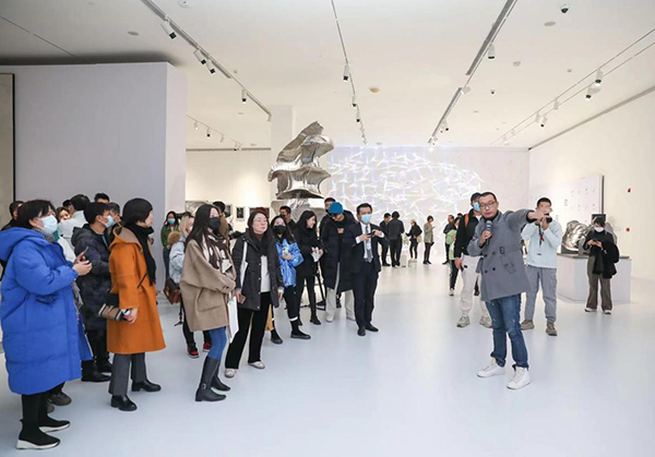 展覽現(xiàn)場吸引了眾多藝術(shù)愛好者和網(wǎng)紅現(xiàn)身打卡,看展觀眾認(rèn)真地觀賞展館內(nèi)的藝術(shù)作品,在雅致又不失活力的氛圍空間里,觀眾紛紛拿出手機(jī)拍照留念,自帶“質(zhì)感濾鏡”的環(huán)境,隨手一拍都出片。